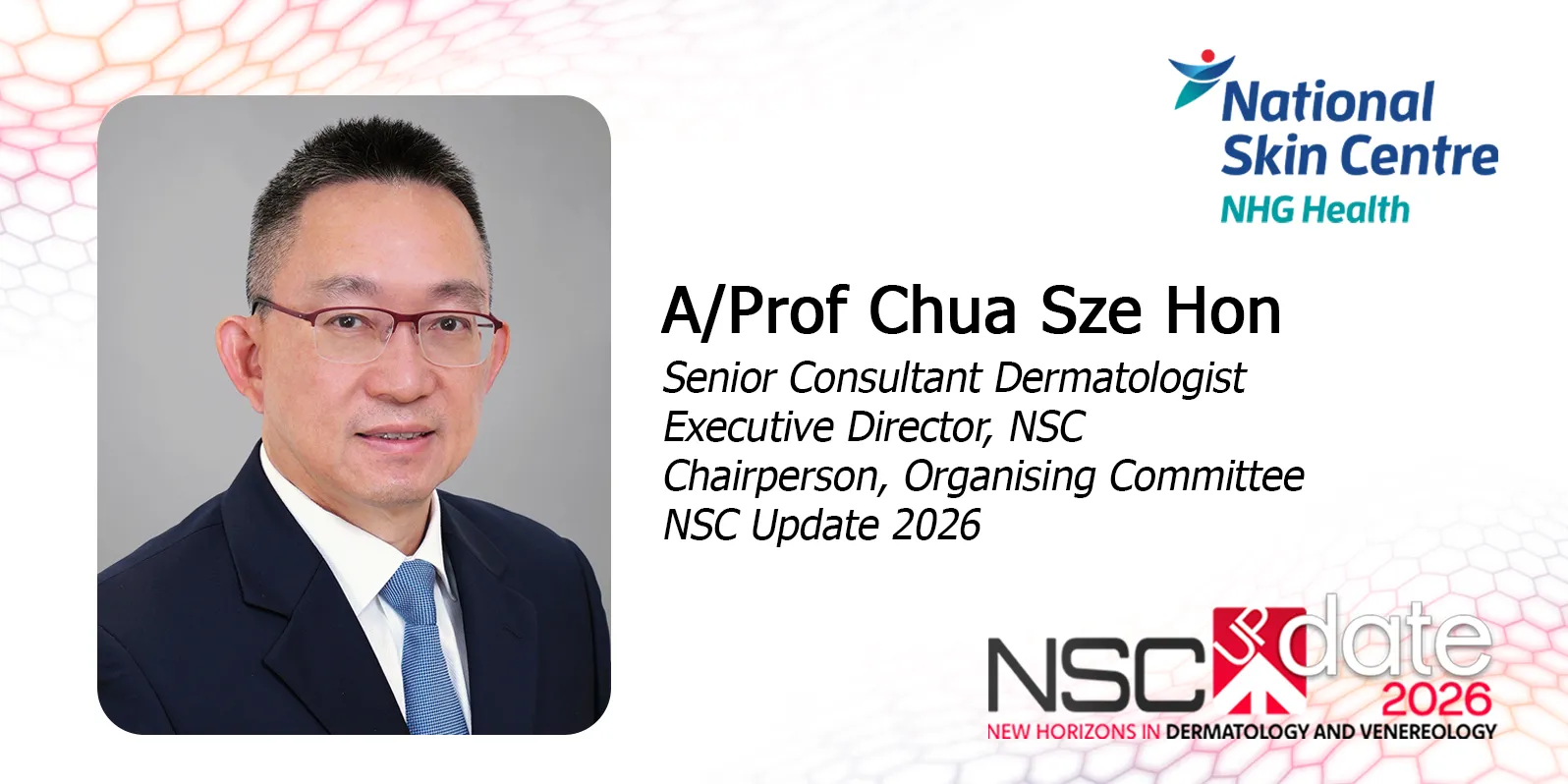 It is with tremendous excitement and heartfelt pride that I welcome you to the National Skin Centre Update 2026, themed “New Horizons in Dermatology and Venereology.” This year, we gather not just to learn, but to challenge conventions, spark new ideas, and shape the future of our specialty together.
